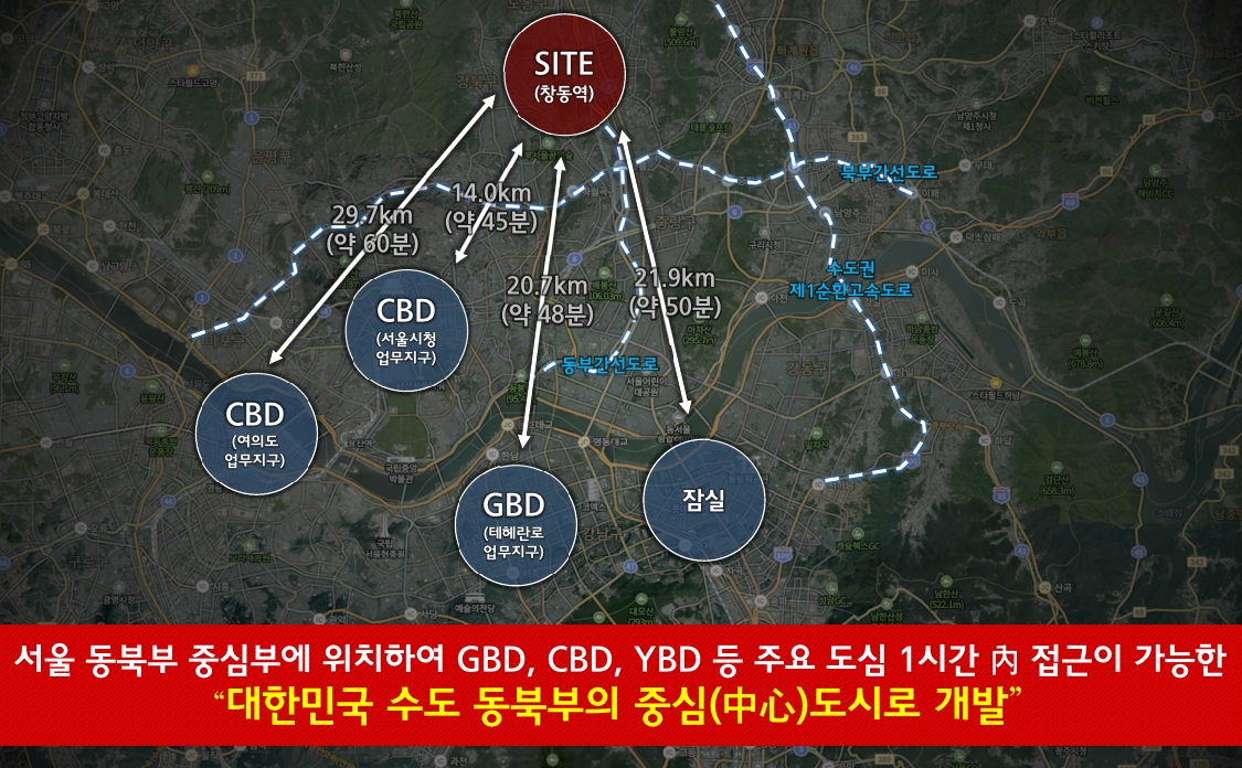 당 사업지야말로 보유세를 앞둔 부동산 규제의 해결책으로 제시된 역세권 상가 입지를 보이며 광역교통망과 상업시설이 통합된 복합시설 기능을 수행하는 등 상가 투자 불패 공식을 성립하고 있습니다. 더욱이 음악산업의 메카가 될 서울아레나와 씨드큐브창동, 사진미술관, 로봇박물관, 복합유통센터, 창동-상계 동서 간 연결 교량 사업 등 활발한 개발 호재가 뒷받침되고 있어 성장 가능성 역시 무궁무진하다고 판단되는데요.