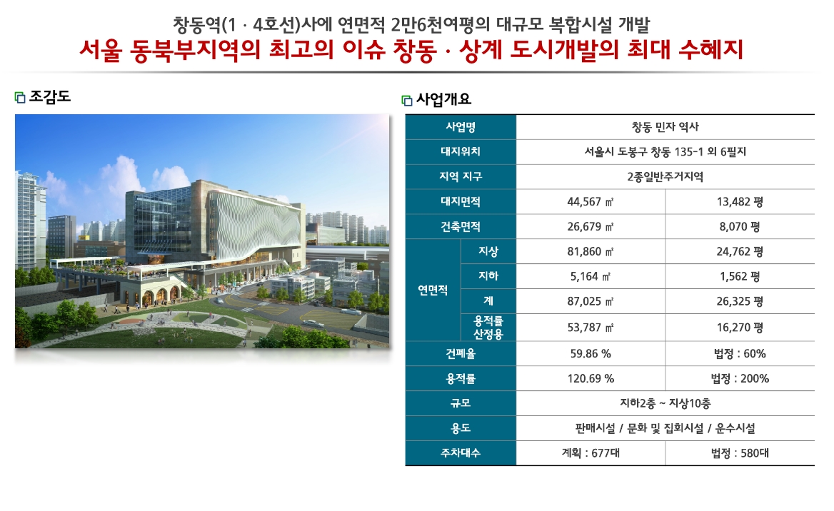 오늘은 1호선과 4호선 창동역사에 2만 6천여평의 연면적을 대상으로 대규모 복합시설이 개발되는 창동아레나X스퀘어에 대한 소개와 분양안내를 드리도록 하겠습니다.